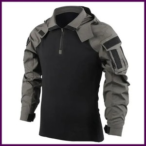 Outdoor Shirts Camo Combat T-Shirt Hooded Men Tactical Shirt Airsoft...