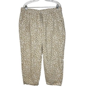 J Crew Women's Size 16 Linen Blend Animal Pull-On Cropped Pants Casual