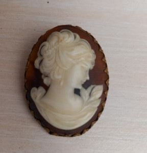 Antique Brass Base Carved Cameo Brooch