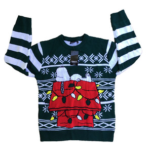 NWT Peanuts Snoopy Christmas Sweater Men Large Pocket Snowflake Green Knitted