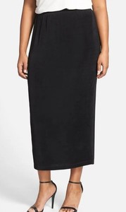 Erin London Black Midi Skirt NWT Large Suede Look Elastic Waist Side Slit Chic