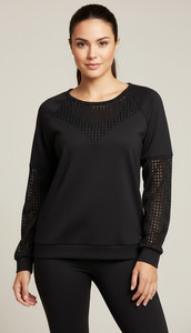 Fabletics Neoprene Fabric Black Perforated Mesh Sweatshirt Activewear Top XXL