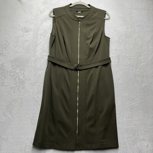 Tommy Hilfiger Scuba Knit Sheath Dress Sleeveless Women's Size 14 Olive Gold Zip