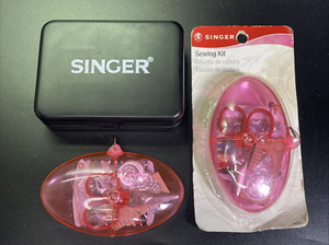 Singer Travel Sewing Kit - VTG Black 37 Piece Set + NOS 2 - Pink 27 Piece Set