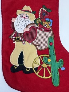 Vintage Cowboy Santa Christmas Stocking Appliqué 90’s Western Chaps Cactus