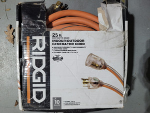 RIDGID 25 ft Heavy Duty Indoor/Outdoor Generator Extension Cord with Lighted End