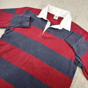Vintage Old Navy Rugby Shirt Men Medium Heavy Cotton Chunky Stripe Y2K Red Gray