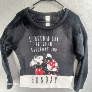 Disney Sweatshirt Pajama Top Womens Medium 12-14 Fleece Mickey Minnie Black Soft