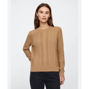 GAP Camel Fisherman Cable Knit Sweater Womens Small Boxy Cotton Crew Ribbed EUC