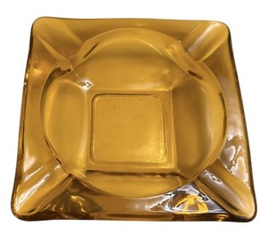 Vintage Ashtray 6” Square Amber Glass Cigar Man-Cave Barware Mid Century Modern