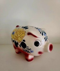 Vintage Japanese Piggy Bank Ceramic Hand Painted w/ Cork Made in Japan 1950's