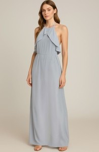Nouvelle Amsale Blue Ice Chiffon Ruffle Halter Maxi Dress Bridesmaid XS Wedding
