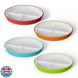 Kids Porcelain Plates with Anti-Slip Silicone Sleeves | Microwave and Dishwas