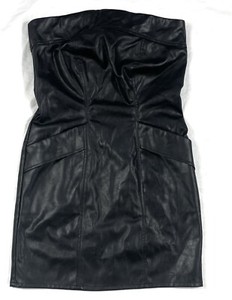 Kendall + Kylie Black Vegan Leather Strapless Dress Mini Size 4/6 Pockets