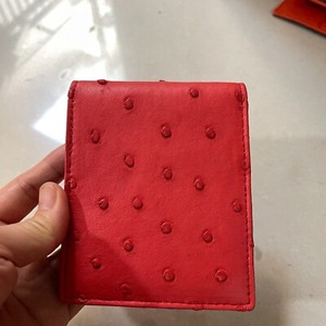 Genuine Ostrich Leather Skin Men's bifold wallet, Handmade, Red Brown