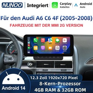 Android 12.3" Carplay Car Stereo For Audi A6 C6 4F MMI 2G 05-08 Bluetooth Adapter