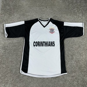 Corinthians Soccer Jersey Shirt Mens Large Black White Football Brazil V-Neck