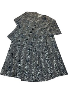 Vintage Leslie Fay Dresses Two-Piece Pleated Skirt Shirt Suit Black Tan Sz 14