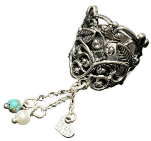 Vintage Wide Band Ring Sterling Silver Dangling Charms Size 9 Open Scrollwork
