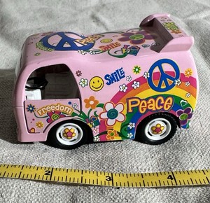 Z3# Kinsfun Dream Car Peace Hippy Van Bus Pink Pullback Diecast Peace Love