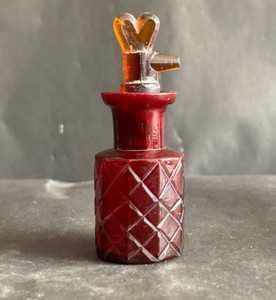 VINTAGE RUBY RED GLASS VICTORIAN SMALL HAND CRAVING PERFUME BOTTLE DECORATIVE.
