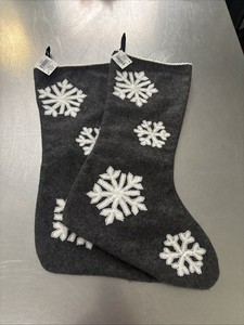 SET OF 2 ~HOBBY LOBBY Gray Wool Nylon Blend, ~Stocking with White Snowflakes~NEW