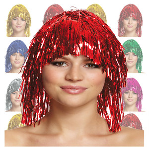 Adults Fancy Dress Shiny Metallic Retro 80s 90s Foil Tinsel Wig Costume Accessor EUR 6.79 to EUR 7.35