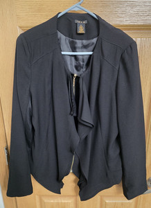 IMAN Chic Black XL Cascading Layered Ruffle Gold Zip Hi Lo Jacket