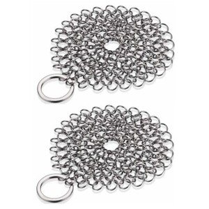 2pcs Stainless Steel Cast Iron Cleaner Chain Mail Scrubber Kitchen Cookware B440