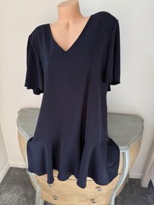 Charles Henry Shift Dress Womens Sz XXL 2X V Neck Navy Blue Flutter NWT Basic