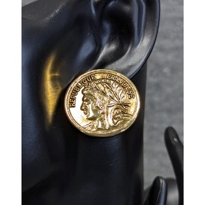 Rebublique Francaise Earrings, Gold-tone, Converted Medallion/Coin, Saftey Back