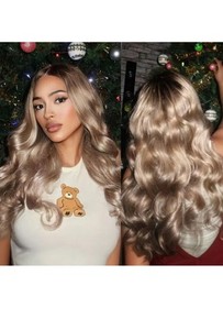 Ash Blonde 13x6 HD Lace Front Wig Human Hair Ombre Brown Roots 24” 200% Density