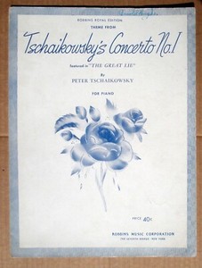 Theme from Tschaikowsky's Concerto Number 1 for Piano Vtg Sheet Music (1941)