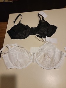 Set Of 2 Hilaine Underwire 42D Black & White Minimizer Bras New With Tags