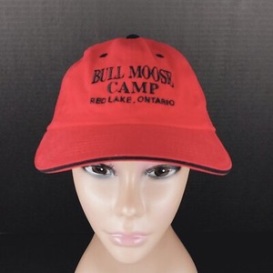 Bull Moose Camp Red Lake Ontario Canada Strapback Cap Hat Red Adjustable