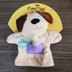 VTG Puppettos Manhattan Toy Company Hand Puppet W/ Dog Bone Woof 9" Soft NOS