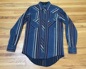 Wrangler Western Pearl Snap Shacket Shirt Men's 15.5-34 Blue Flannel Brushpopper