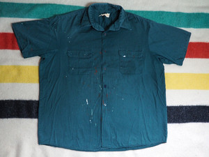 VTG 60s Sears Grunge Faded Thrash Green Chino Pocket Work Button Shirt Mens XL