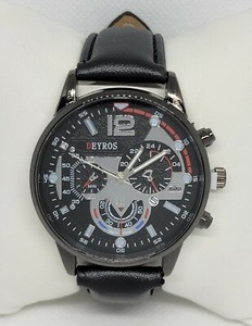 Mens Deyros Fashion Casual Classic Black Tone Silver Dial Date Analog Watch E2
