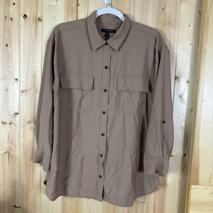Banana Republic Women’s Button Front Long Sleeve Top Large Petite Safari Neutral