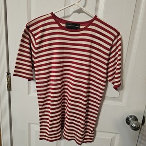 August Silk Knits Womens Short Sleeve Top 100% Silk Red White Striped Sz M