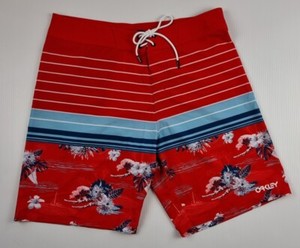 Oakley Tropical Bloom 18 Mens Boardshort Size 34 Red Hawaiian Performance Fit