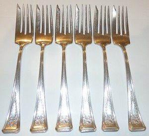 Set of 6 Antique ASCo ROANOKE 1913 SilverPlate Dessert Fish CAKE PASTRY FORKS