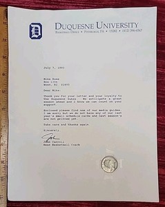 JOHN CARROLL DUQUESNE UNIV. BASKETBALL NCAA coach Autograph Auto singed letter