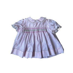 Vintage handmade baby girls Smocked Dress 0-3 mos pink rosette lace