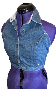 Tommy Hilfiger Denim Blue Jean Crop Top Halter Women Size Large Y2K Western 90s