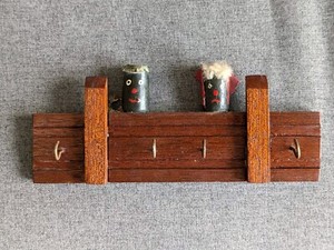 Vintage Handmade Ethnic Wooden key Rack With Coloured Grandparent Figures