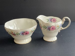 Vintage EB Foley Cornflower Cream and Sugar Bowl Set Large Sized