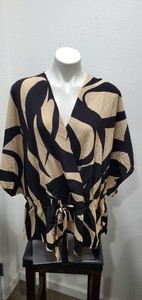 Sweet Rain Short Sleeve Dolman Top Geometric Faux Wrap Open Peplum Size 3XL