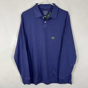 LL Bean Slightly Fitted Long Sleeve Polo Shirt Mens Medium Dark Twilight Blue